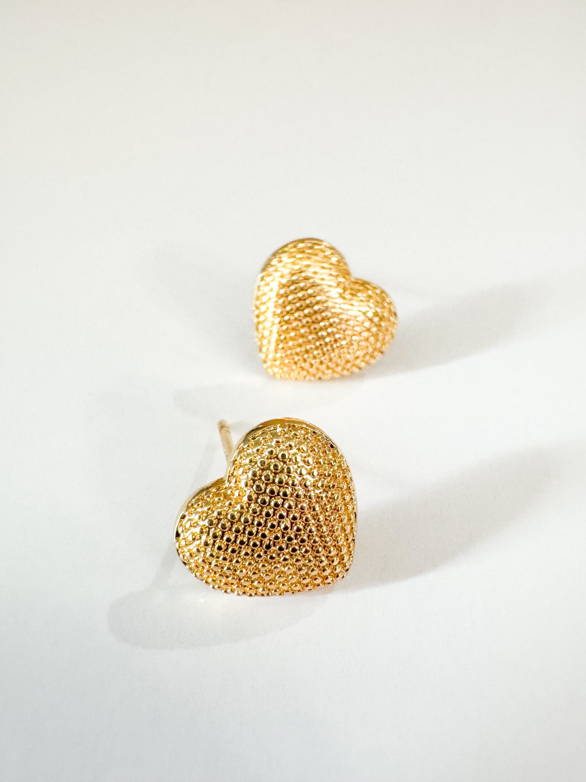 textured heart studs in gold