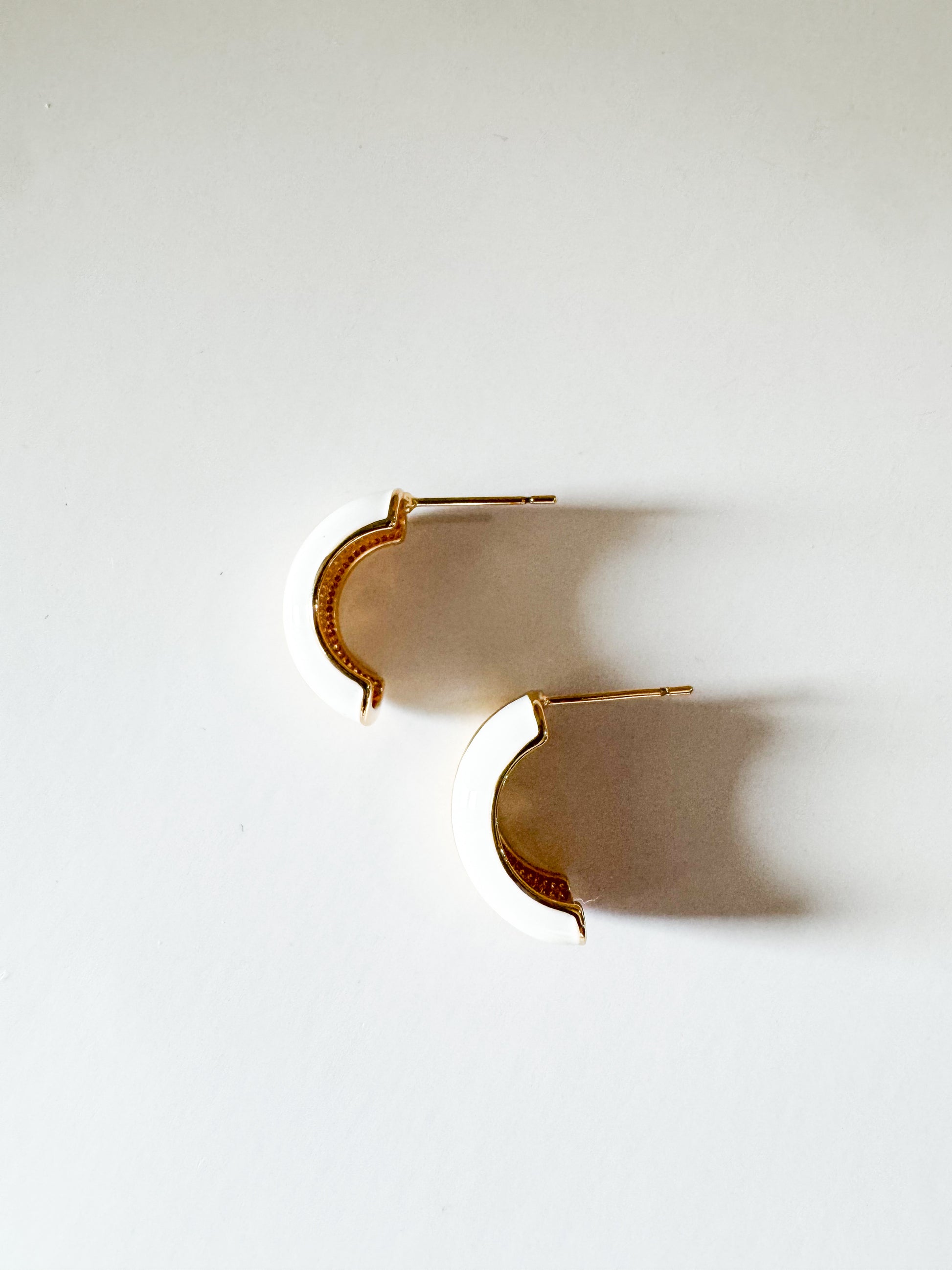 white enamel stud earrings