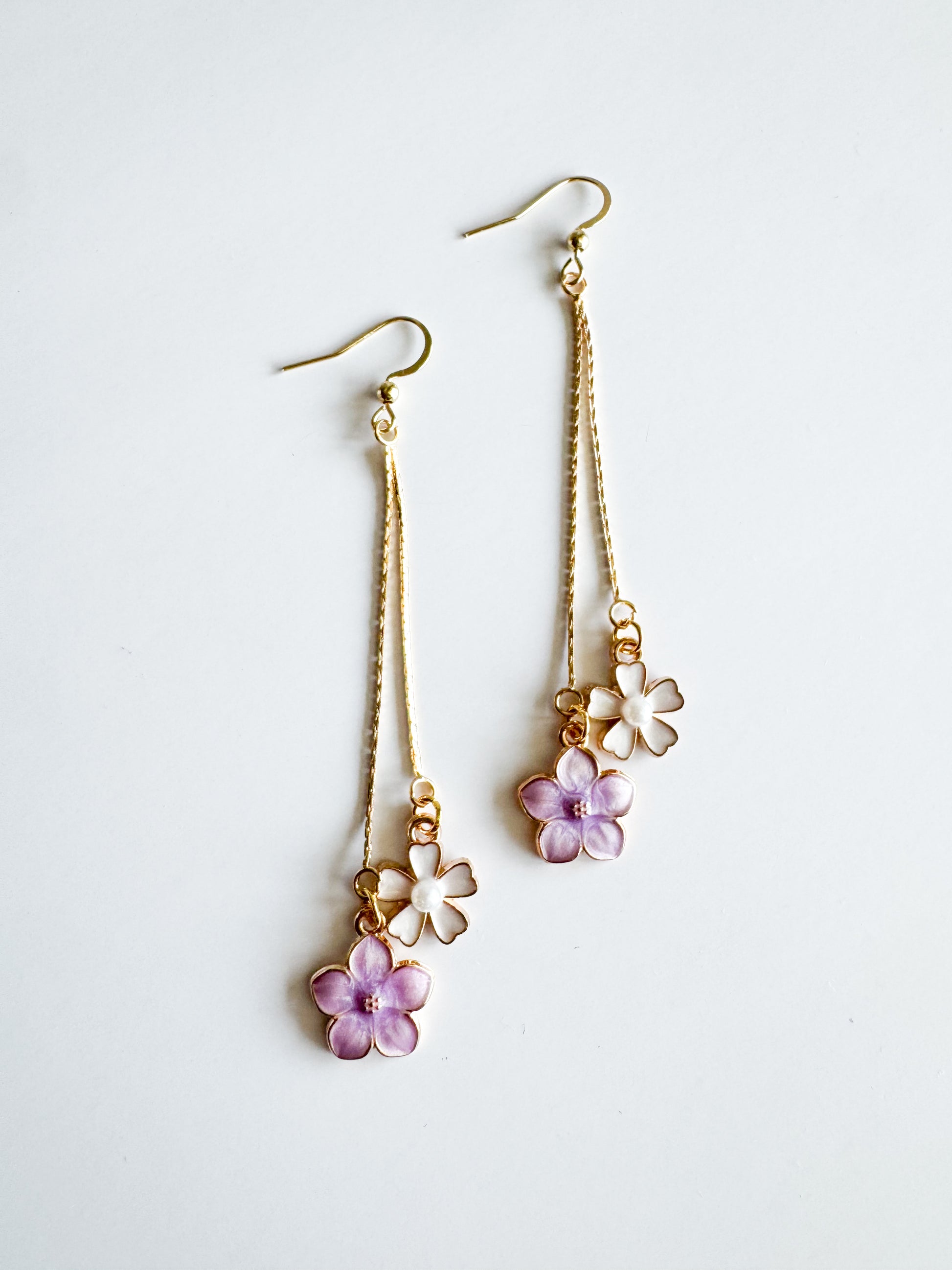 white & purple flower earrings