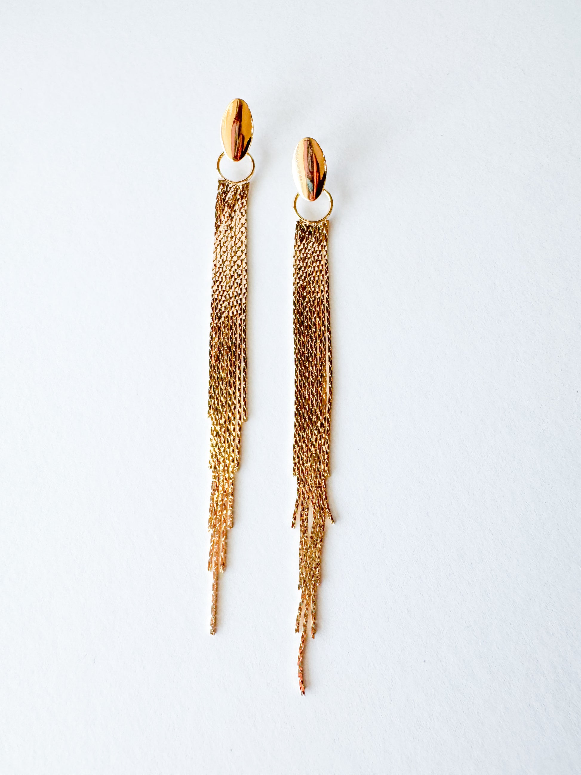 oval top tassel earrings in gold